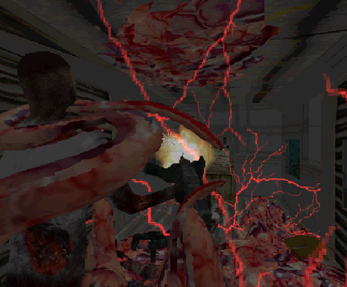 "Carnagem" is an FPS Retro DarkWave, where the player controls a ghoul that invades a moving train to feed and breed.